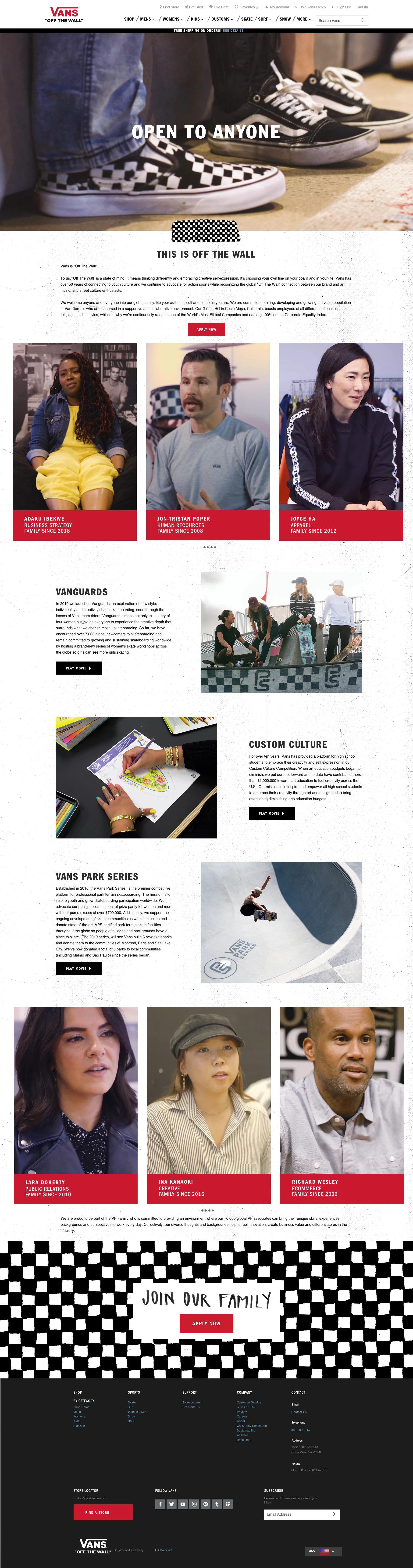 Vans – Diversity & Inclusivity Careers Page